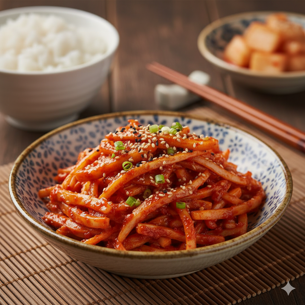- 🥕 야채 진미채볶음: 채 썬 당근, 대파, 양파 추가로 식감 살리기