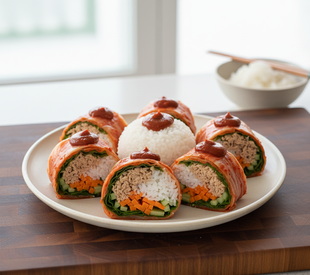 또한 김치쌈 도시락으로 활용하면 밥이 마르지 않아 실용적입니다. 김치가 밥을 감싸 수분을 유지하기 때문에 장시간 보관에도 밥이 딱딱해지지 않습니다. 피크닉용 도시락이나 야근용 간단 도시락으로도 딱이죠. 김치쌈 구이 버전도 있습니다. 팬에 기름을 살짝 두르고 김치쌈을 앞뒤로 노릇하게 구우면 김치의 단맛이 살아나며 완전히 다른 풍미가 납니다. 치즈를 살짝 올려 구우면 ‘김치쌈 치즈롤’로 변신해 어린이 간식으로도 좋습니다.