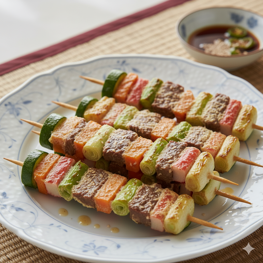 ‘산적’은 단순한 전이 아니라, 명절의 상징이에요. 제사상에도 오르고, 명절날 온 가족이 함께 부치며 이야기꽃을 피우는 전통이 깃든 음식입니다. 특히 꼬치에 꽂힌 재료들은 각각 의미가 있어요 — 고기는 풍요로움을, 채소는 건강과 화합을 상징하죠.