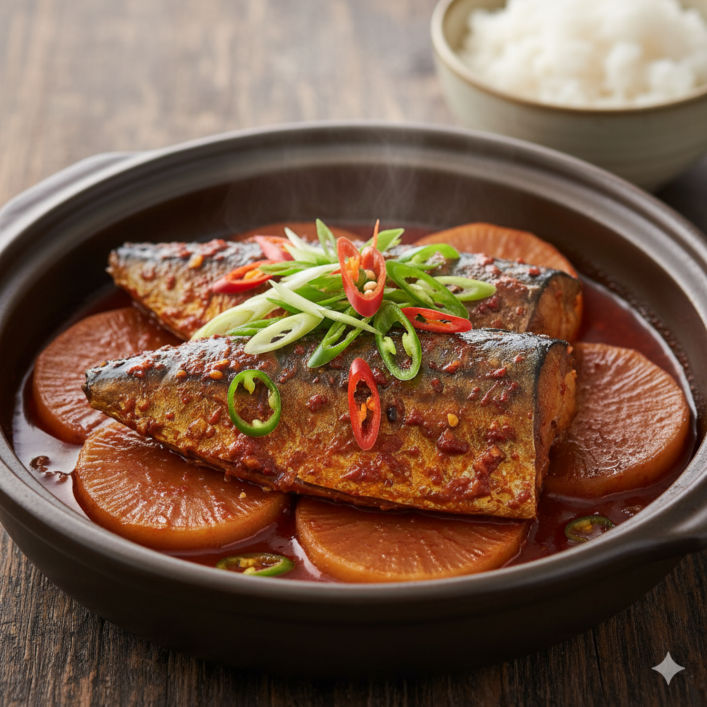 - 무조림 스타일: 고등어보다 무 양을 늘려 국물 맛을 깊게.