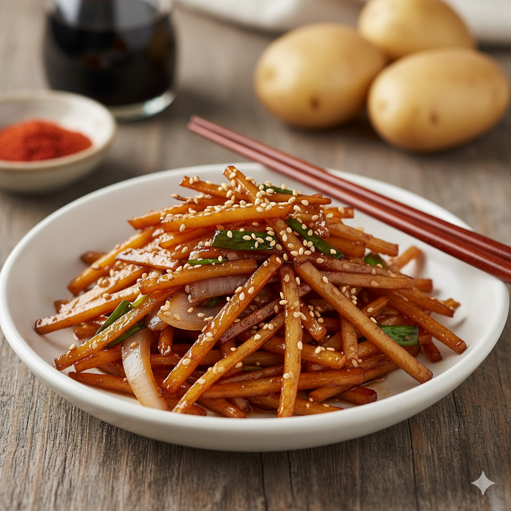 🥔 감자채 간장볶음 10분 레시피 – 간단하지만 깊은 맛의 밥도둑 반찬